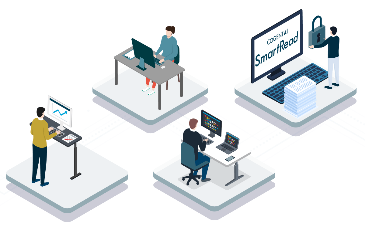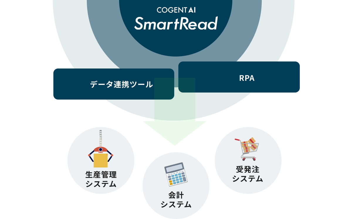 SmartReadは、高精度な文字読み取りだけでなく、複数文書の自動仕分けや後続システムとの連携など、文書処理の各プロセスを効率化することで、紙文書や文書画像からのデータ抽出やデータ活用に関する企業の課題を解決します。