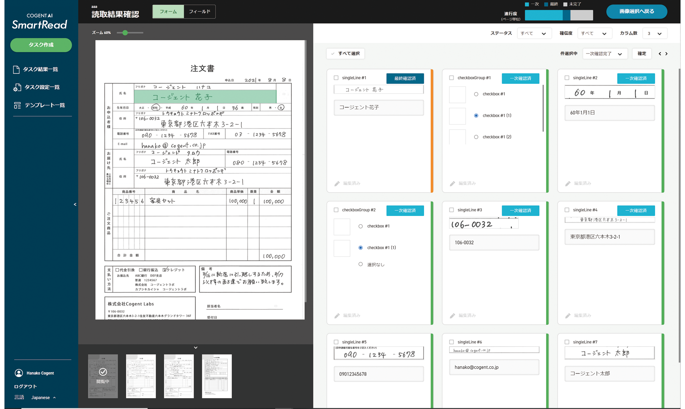 非エンジニアでも直感的に操作できるユーザーインタフェースで、事前設定〜読取り〜確認〜出力を誰でも確実に遂行できます。文書処理パターンを「タスク」として設定・保存できるため、繰り返し同じ処理を行う場合はさらなる作業時間の削減が見込めます。