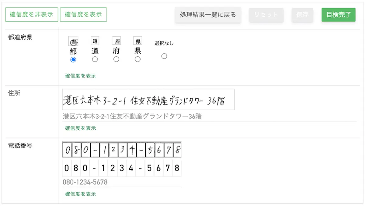「Tegaki」読み取り結果確認画面のイメージ
