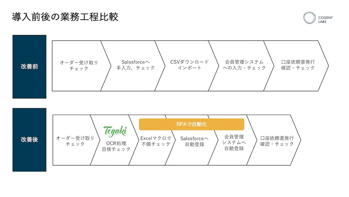 以下は、導入前後の業務工程を比較した図です。