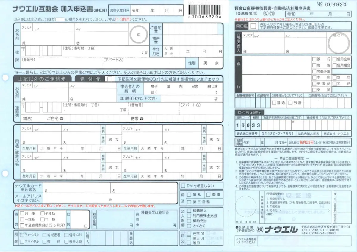 ①互助会加入申込書をTegakiで読み取り