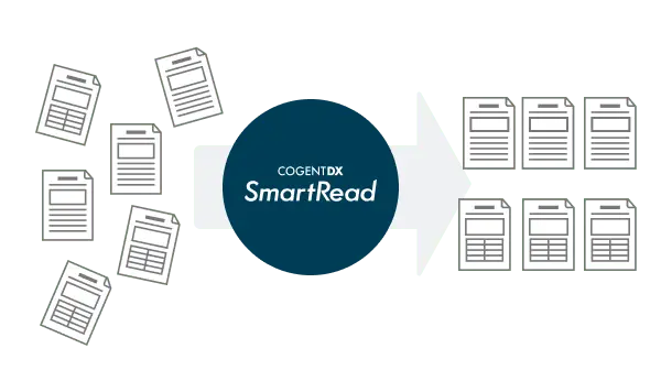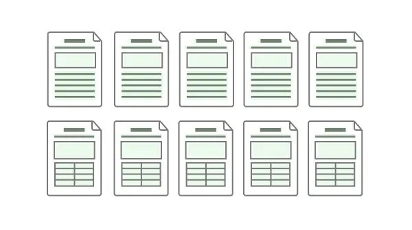 様々なタイプの文書が混在したファイル一式からでも、レイアウトや種類等の違いに基づいて文書を自動で仕分けます